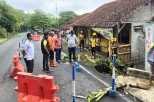 Wali Kota Banjar, Ir. H. Sudarsono., meninjau lokasi jalan amblas yang berlokasi di Jalan Banjar – Cimaragas, Blok Junti, Kelurahan Banjar, Kota Banjar. Sabtu (24/05/2025). Hujan dengan intesitas tinggi pada hari Jumat sore tanggal 23 Mei, mengakibatkan terkikisnya pondasi gorong-gorong sehingga menyebabkan jalan amblas. Wali Kota menuturkan bahwa perbaikan jalan …